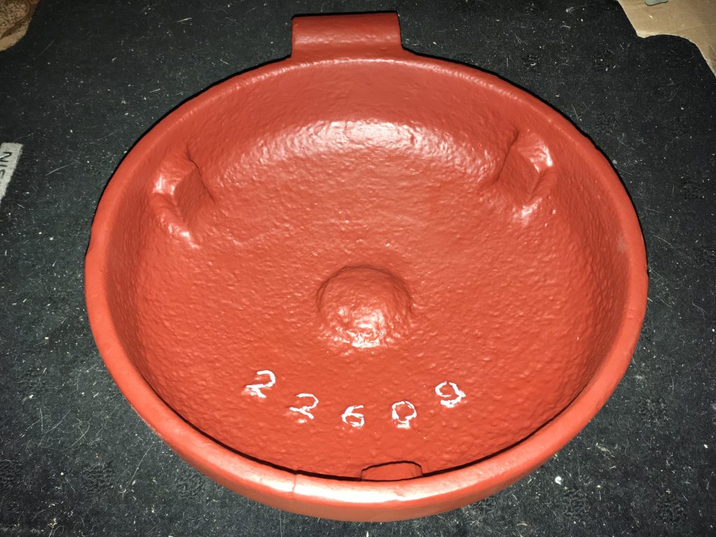 The clean-up and preparation of components of the two locomotives continues. A set of tank filler castings, comprising base and lid, have been cleaned up and painted. A point of interest in the lid - the pattern number #22609 is incorporated in the casting, picked out in white for the photograph.